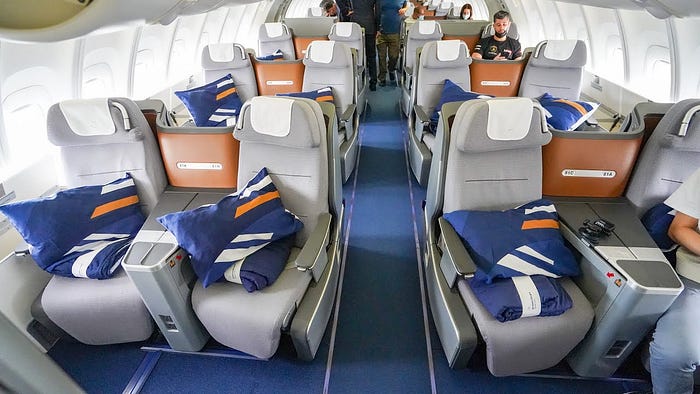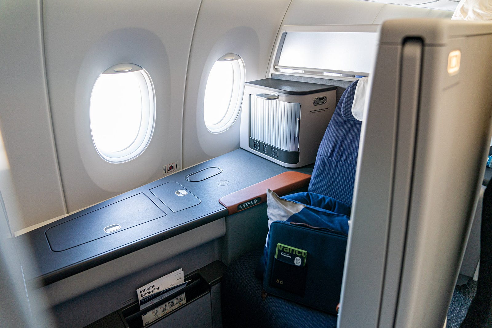 The business class cabin is also great, with different seats fitting different passengers. All offer direct aisle access, a decently large screen, and the feeling of being in a spaceship. Premium Economy seats offer shellbacks to not disrupt your neighbors and relatively large screens. Lastly, they even offer pretty competitive seats in Economy, which is a surprise for sure.